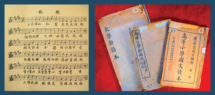 唐文治校长编纂的部分教材及创作的校歌 |