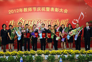 9月8日下午,我校全体教师欢聚一堂,在曲江校区隆重召开了2012年教师节庆祝暨表彰大会,交大附中两个校区全体教职工参加了庆祝大会,西安交通大学副校长程光旭、西安交大社会教育管理处处长冯晓光、交大基础教育党委副书记师麦姜也应邀出席。