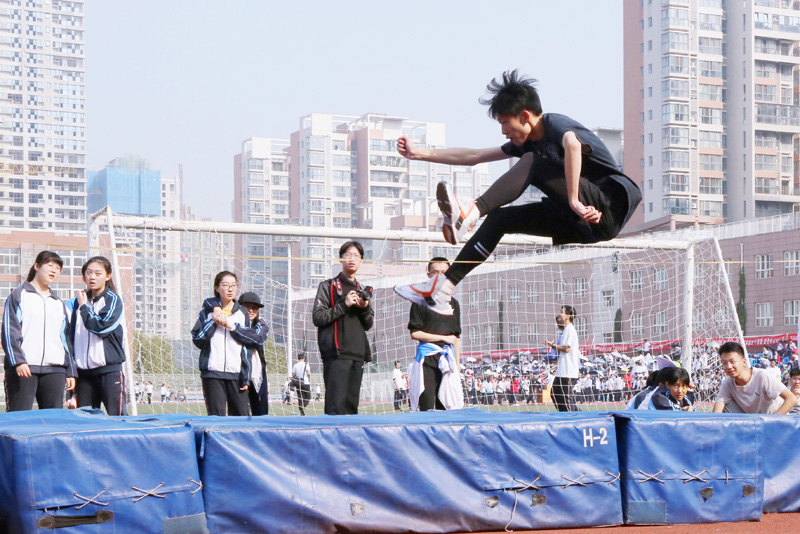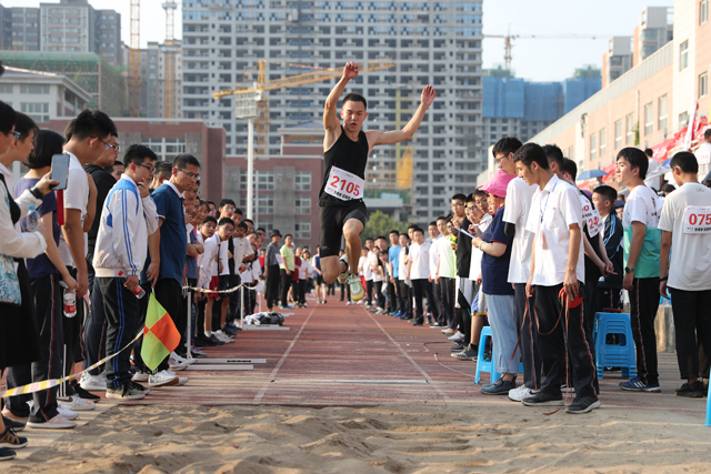 竞赛场上,运动健儿们发扬“更快、更高、更强”的奥林匹克精神,乐观自信、奋力拼搏,焕发出勃勃生机;观众席上彩旗飘扬,呐喊声和助威声此起彼伏、振奋人心。伴随着阵阵助威,运动员们精神百倍、活力四射,他们挥洒汗水,以顽强拼搏的姿态和勇攀高峰的精神在体育赛场上书写交大附中的新篇章。经过了两天的激烈角逐,共有两个项目的记录被打破,其中高二.五班的付若偲同学以1.55米的成绩打破了由高04届杨洋同学保持了13年的女子跳高记录,高一、四班郭静怡同学打破了由高19届郭宝珊同学创造的女子立定跳远记录。訾校长作为颁奖嘉宾,为个人单项以及团体前八名的班级进行颁奖,并鼓励运动员们发挥自己的最好水平,展示附中学子拼搏向上的体育精神,倡导全体学生积极参加体育活动,建立终身体育的观念。