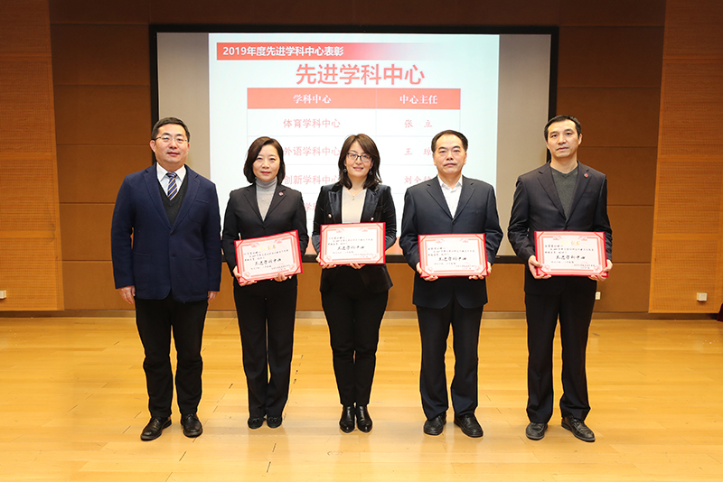 在本届研讨会表彰环节,对2019年度为学校教育教学、科研发展做出贡献的先进学科中心、先进个人进行了表彰,展示了2019年度我校教科研的丰硕成果。依据学期贡献、其他学科评价及校处评价等指标,体育、外语、创新及外语学科中心获得先进学科中心称号;根据同课异构、现场授课及最近两学期教案作业、学生评教等数据,12个学科共43位老师在教学全过程评优中,获得优秀等级。