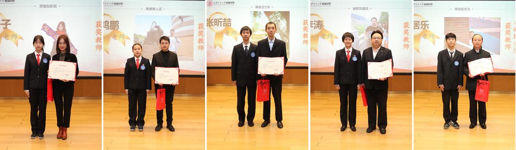 由团委、学生会主要负责组织,完全由学生推评的“十佳教师”表彰把整个奖励推向了高潮,同学们向周勇、杨晓蓉、李彬等获奖老师敬献鲜花、颁发证书。