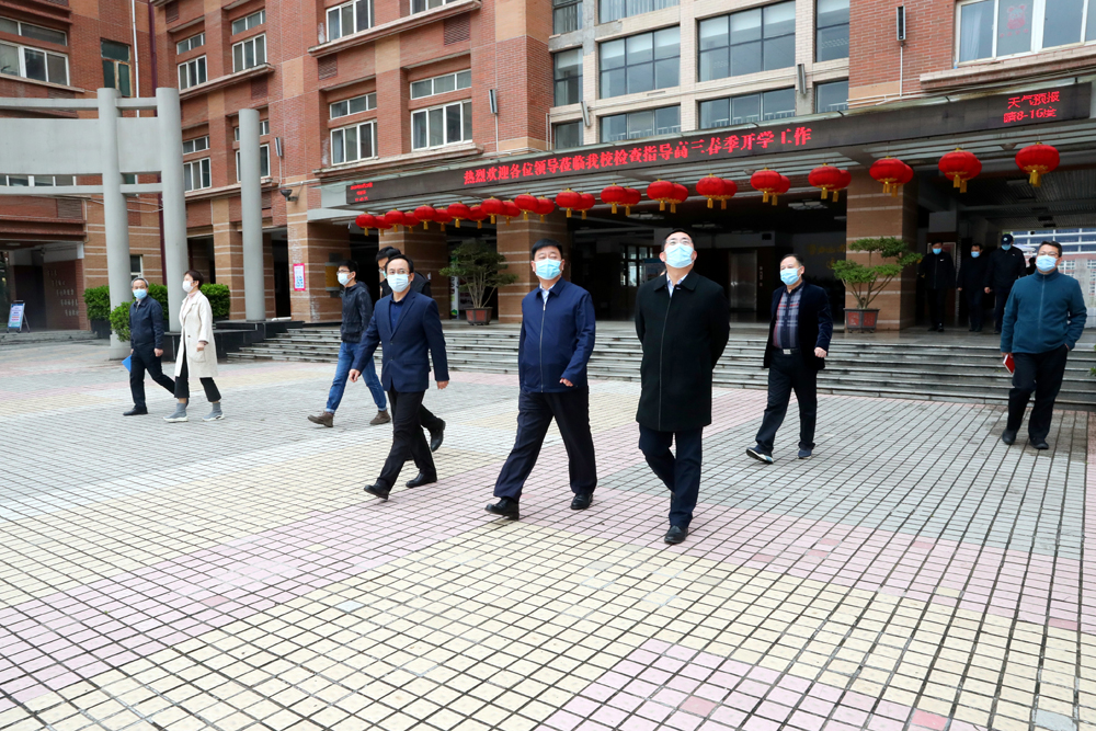 2020年3月29日上午,碑林区政府卢光文区长、侯学东副区长等一行来西安交大附中调研指导学校疫情防控、高三春季开学条件保障等工作。区教育局冯洁局长、区卫健局杜国荣局长、区市场监督管理局杨琳局长、区安监局王畅余局长、公安碑林分局贾众怀副局长、交警碑林大队费涛副大队长等随同调研。