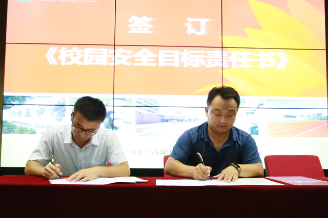 曹源副校长与德育处杨文全主任签订校园安全目标责任书 德育处杨文全主任与各年级组组长签订校园安全目标责任书