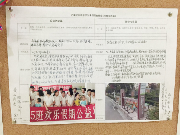 为拓展学校德育活动领域,深化德育工作内涵,今年暑假前夕,我校德育处给初17届全体学生布置了富有特色的暑假德育作业,要求学生在假期间开展两项社会实践活动。一项是“公益活动”,另一项是“社会考察”,二项活动需分别写出感悟和考察报告。