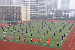 10月18日上午8点,我校第一届田径运动会在崭新的校田径场上正式拉开帷幕。初中一年级六个班级的运动员方阵在国旗队、校旗队、红旗队和裁判员代表队的带领下,喊着雄壮的口号陆续进入会场,由各班精心准备、各具特色的入场展示成为了本届运动会一道亮丽的风景线。运动员进入会场后,举行了庄严的升国旗仪式。随后,黄淩副校长致开幕词,管委会邢忠民副主任宣布运动会开幕。