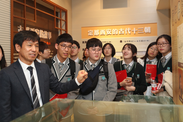 访问期间,韩亚高中学生深入我校课堂,在课堂上互动交流,分享彼此文化和教育上的差异;徐近月老师组织的中韩文化交流课,给两校学生提供了思想交流和碰撞的平台;张蒙老师带领韩国学生学习中国武术,领略传统中国功夫的魅力。韩亚师生们还参观了陕西省历史博物馆,大雁塔和兵马俑等历史名胜古迹,进行长安文化探秘,追寻千年流传的世界遗产,同时也深入了解了古代中国和古城西安的发展历史,感受西安作为十三朝古都的魅力和风采。交流学生还入住接待同学家庭,体验了中国中学生的日常生活。这些丰富的活动,增加了彼此的了解,加深了两校学生之间的友谊。