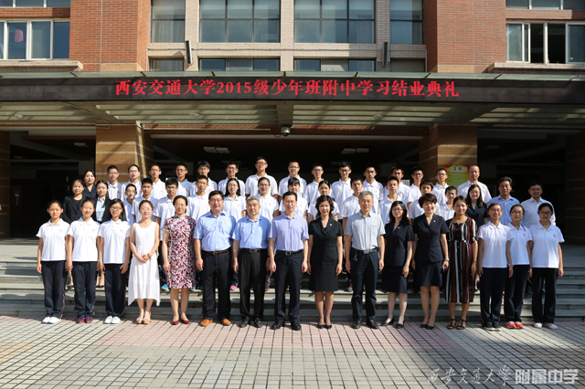 2016年7月1日上午,我校在多功能报告厅隆重举办了2015级西安交通大学少年班附中学习结业典礼。西安交通大学副校长郑庆华,中国工程院院士、西安交通大学教授卢秉恒,西安交大教务处处长徐忠、招办主任訾艳阳、拔尖办副主任杨森教授,西安交通大学基础教育党委书记、交大附中校长王佩东以及附中各处室主任、2015级少年班各任课教师、家长代表与全体学生共同参加典礼并观看了演出。