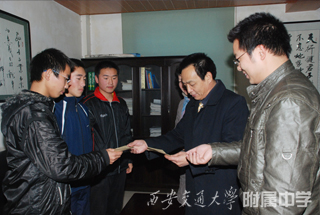 当天,我校师生刚到长安九中,就受到了学校的热烈欢迎。在欢迎仪式结束后,两校党支部之间进行了热情的交流。两校各学科教师就学科特点、教学方法、创新能力的培养等方面的问题进行了深入的探讨,两校学生在学习方法、人生理想、特长培养方面进行了广泛的交流。与此同时,校团委书记周洁老师及初中党支部党员代表看望了被资助的三名高二年级的优秀学生,询问了他们近来的学习和生活情况。接过我校党员教师赠与的“爱心基金”,他们激动不已,表示要刻苦努力,以优异的成绩回报大家。最后,我校学生还向长安九中的同学们赠送了全校同学捐赠的两千余册图书,相信这些图书,必将丰富九中同学们的视野,开阔他们的眼界。