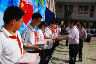 本次文艺演出还邀请了初一年级同学的家长来到现场观看,在募捐活动中,很多家长朋友都为灾区人民献上了一份爱心。文艺演出结束后,各班同学还进行了义卖活动,王佩东校长亲自莅临义卖现场,给予了同学们极大的支持和鼓舞。经过统计,初一年级本次募捐和义卖总共筹集善款一万余元,它们将通过中国红十字会插上翅膀,飞到汶川,再次把交大附中全体师生的爱心和祈福送到灾区同胞身边。