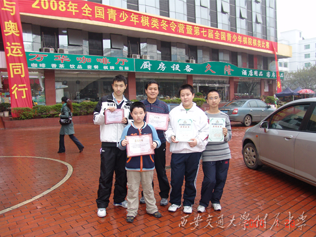 2008年1月24至28日,由国家体育总局棋牌管理中心,共青团中央宣传部主办的第七届全国青少年棋院棋类比赛暨全国青少年棋类冬令营在海口隆重举行。本次大赛共有来自全国各地青少年选手300余人参加。我校作为全国唯一的一所中学代表队参加了这次比赛。在开幕式上,我校孙国运同学代表全体运动员上台宣誓。海南电视台还对该同学进行了采访。在开幕式进行的与中国国家队国际象棋总教练、特级大师叶江川的交流赛中,我校棋手高超的棋艺和水平受到了大师的称赞,并对我校开展国际象棋的活动给予支持和肯定。在随后的比赛中,我校国际象棋队成绩优异,初二.3班孙国运同学以不败的战绩获得国际象棋14岁组第一名,为我校争得了第一个全国体育比赛的冠军。初三.3班邸睿达同学获得16岁组亚军。
